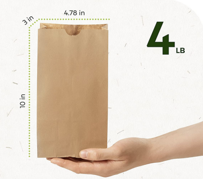 4lb 4.78x3x10 Kraft Paper Bag 500/pk