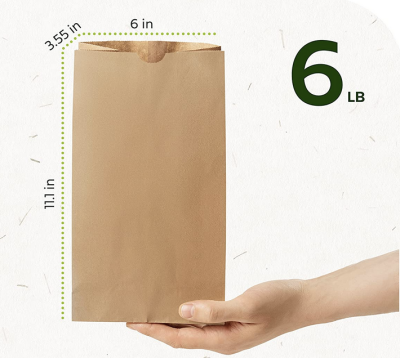 6lb 6x3.55x11.1 Kraft Paper Bag 500/pk