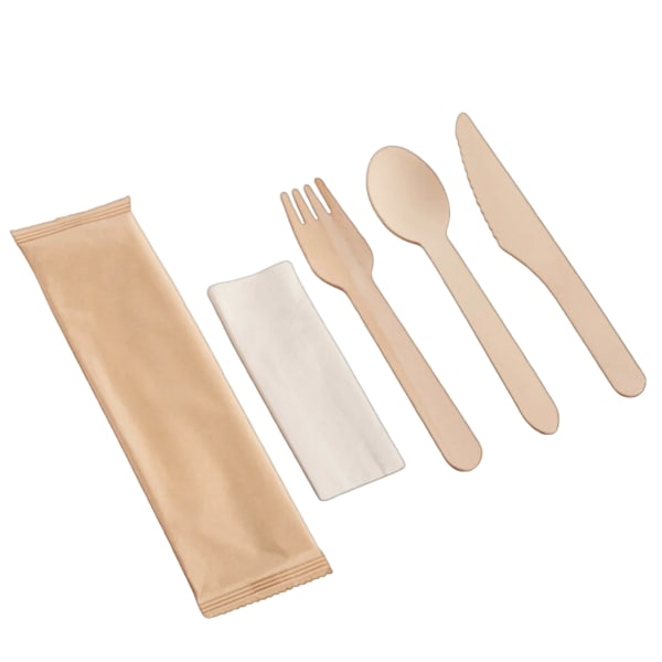 6.5'' Wooden Cutlery Sets - Napkin, Fork, Spoon, Knife
