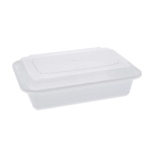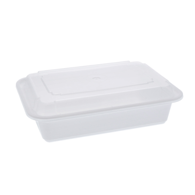 58oz (1700ml) 1-Compartment White PP Rectangular Containers w/ Lids 150 sets/case
