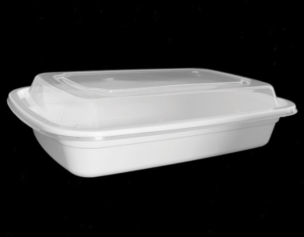32oz White PP Rect Container w/ Lid 150 sets/cs